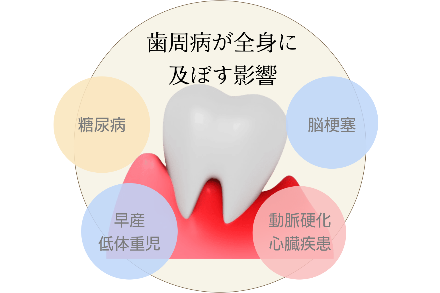 これが脳梗塞や心筋梗塞といった重大な病気の誘因となる場合があります。口内のトラブルが全身の健康に直結することを理解し、早めに対応することが重要です。