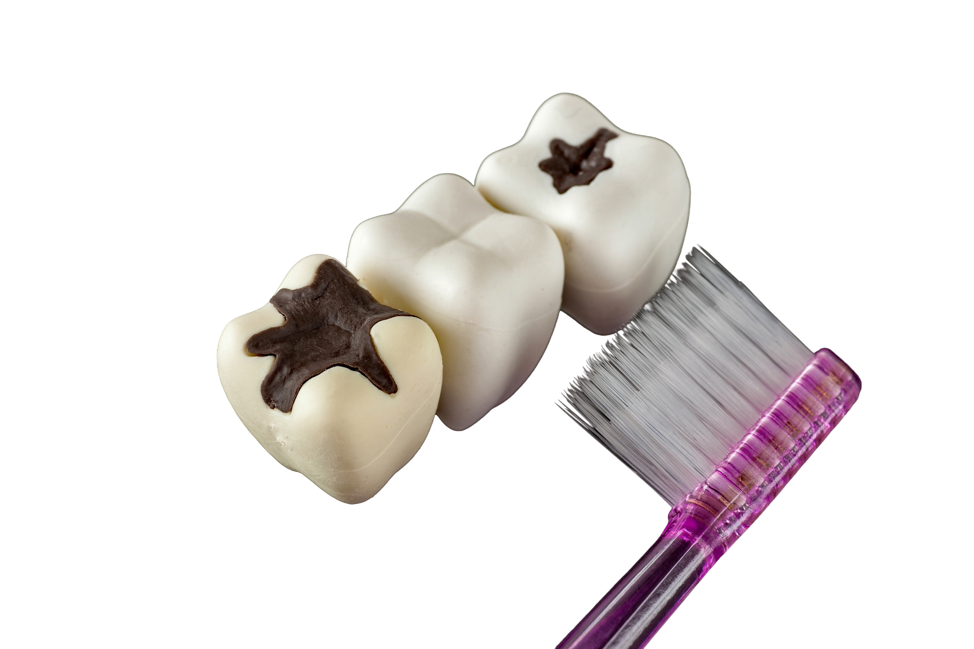 むし歯は、歯の表面にたまった歯垢や歯石に含まれるむし歯を起こす細菌(ミュータンス菌など)が原因で発症します。この菌は食べ物の糖分を分解して酸を作り出し、その酸が歯の表面を徐々に溶かしてむし歯を引き起こします。